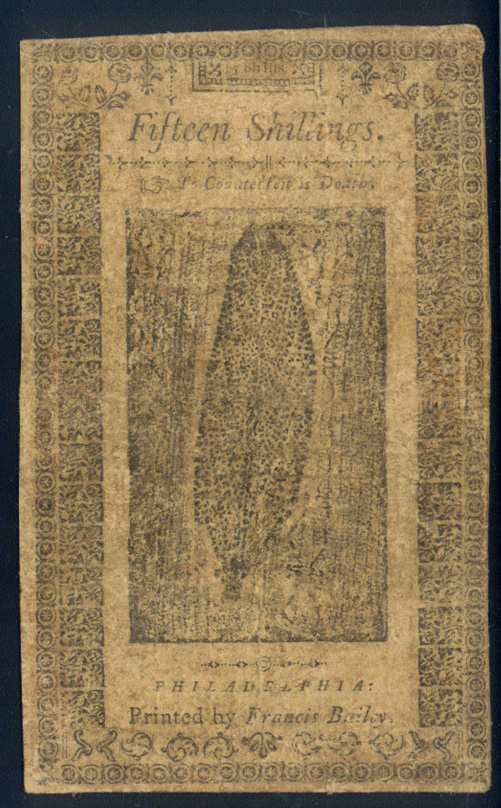 1785 PENNSYLVANIA 15 SHILLINGS / $2 SIGNED SHORTWORTH & KAMMERER