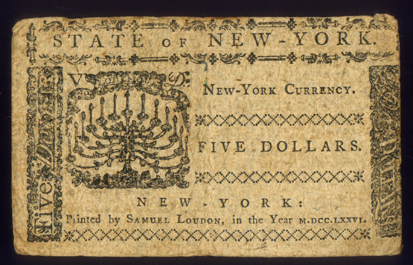 AUGUST 1776 NEW YORK $5 (SPANISH MILLED) 1st STATE ISSUE SIGNED NEWKERK & WEBSTER