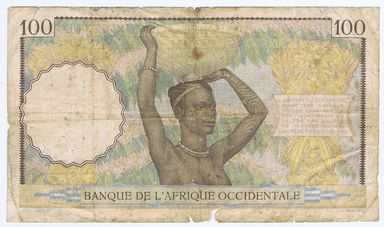 FRENCH WEST AFRICA 100 FRANCS WORLD WAR II DATED 10-9-1941 – BANQUE de L’AFRIQUE OCCIDENTALE