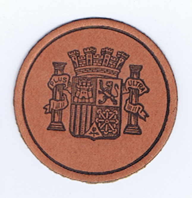The Spanish Civil War (1936-1939) divided mainly between the right and the Catholics under the Nationalists as a way to stop the expansion of Bolshevism. On the left, labor, the students and intellectuals. The conflict involved large numbers of non-Spanish, including; Germany sending a Luftwaffe unit, the Italians giving 100,000 men etc. War gave rise to the disappearance from the economy of small change, so a plan was devised where the bank gave out free thick paper discs, about 1 1/4 inches with coat of arms on one side and blank on the other. To that one side you could attach a postage stamp of any value and use that as a money. Offered here are two different types.
