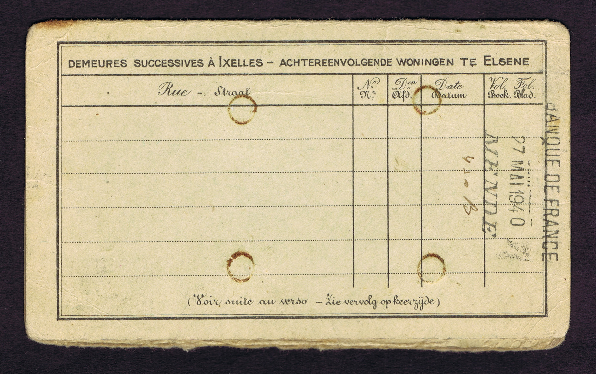 WWII BANK of FRANCE IDENTITY CARD (1939-1940 LAUFER) with PHOTOGRAPH & 1 FRANC REVENUE STAMP.